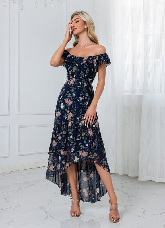 Imaginez-vous rayonnante et pleine de grâce dans cette magnifique Robe Asymétrique Sirène Florale. Conçue pour celles qui aiment se démarquer, sa coupe sirène épouse élégamment votre silhouette, tandis que sa longueur asymétrique apporte une touche moderne et audacieuse. Le délicat tissu en mousseline, orné de motifs floraux éclatants, danse à chacun de vos pas, vous enveloppant d'une légèreté incomparable. Que ce soit pour un mariage printanier, une soirée estivale ou un événement spécial en automne, cette robe est votre alliée pour créer des souvenirs mémorables. Son col bateau met subtilement en valeur vos épaules, ajoutant une note de sophistication à votre allure.Le style unique de votre Robe Asymétrique Sirène Florale