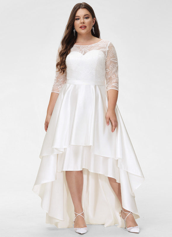 Plongez dans les détails de cette pièce maîtresse. Le corsage en dentelle délicate, avec son élégant col rond et ses manches trois-quarts, apporte une touche de raffinement intemporel. Cette dentelle n'est pas seulement belle à regarder, elle est également agréable au toucher, épousant vos formes avec douceur. La jupe, de forme trapèze, est le véritable atout de cette robe. Son ourlet asymétrique (court devant, long derrière) crée un effet visuel dynamique et aérien à chaque pas, révélant subtilement vos jambes et accentuant le mouvement de la danse. Entièrement doublée et dotée d'un soutien-gorge intégré, elle garantit un confort et un maintien impeccables du début à la fin de votre événement.